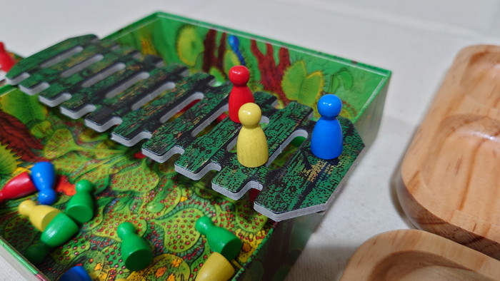 ・申告された通りの数字だった場合→ 自分の駒が「チャオチャオ~」の掛け声とともに橋の下に落とされます。」